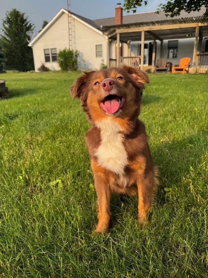 Ocean is an up-and-coming mama here at Ivy Meadows, and she’s already capturing hearts with her playful spirit and affectionate nature. She’s full of spunk, enjoying everything from wrestling with her doggy friends to quiet, independent play and exploration. Hand her a ball on a walk, and she’ll proudly carry it all the way home—every time. Ocean is eager to please and finds her greatest comfort in the presence of her humans.