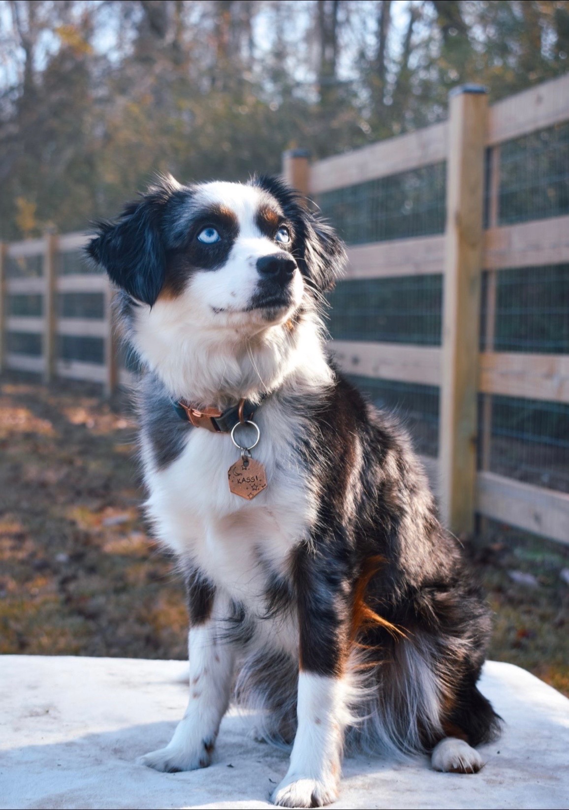 Casper was born August 13th of 2025 making him our up-and-coming stud prospect. He is an absolute joy to raise. He is a minimal blue merle (Merle length 227/272), he is non red-factored. Casper is full panel clear, including NAD, and he sports a beautiful partial blue eye paired with a rich brown eye giving him the sweetest “puppy eyes” look.